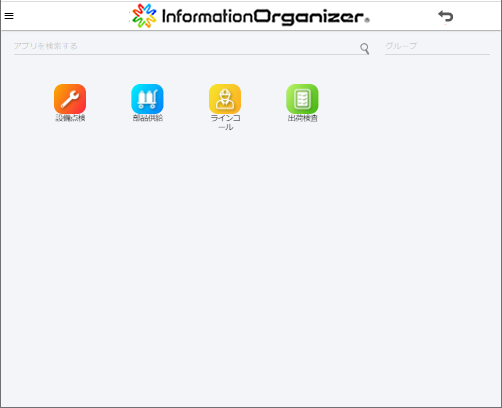 2.1 帳票アプリをホーム画面へ追加する メニューから[標準モード]を選択します。 ホーム画面のを選択します。 任意の帳票アプリを選択します。 画面左上の「アプリを検索する」に帳票アプリ名を入力して検索できます。 画面右上の「グループ」からグループ名を選択して、表示する帳票アプリをグループで絞り込めます。 帳票アプリがホーム画面に追加されたことを確認できます。