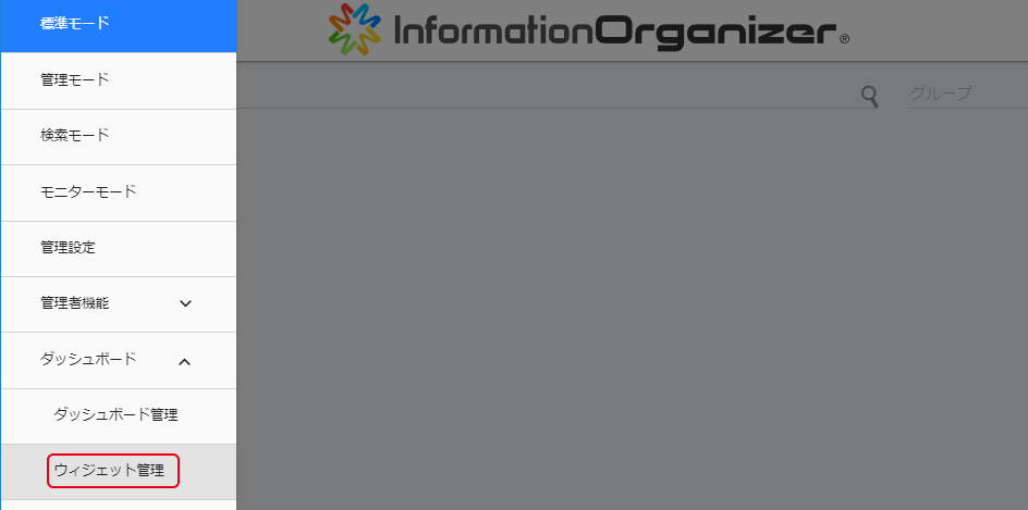 - メニューから[ダッシュボード]>[ウィジェット管理]と選択します。