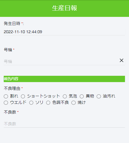 | 帳票アプリ名 | 生産日報 |