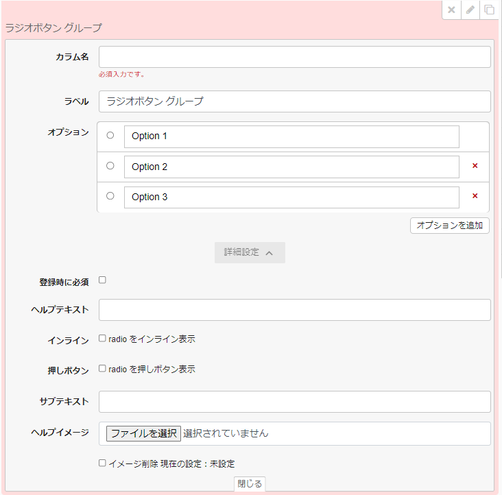 オプション:ラジオボタンの項⽬