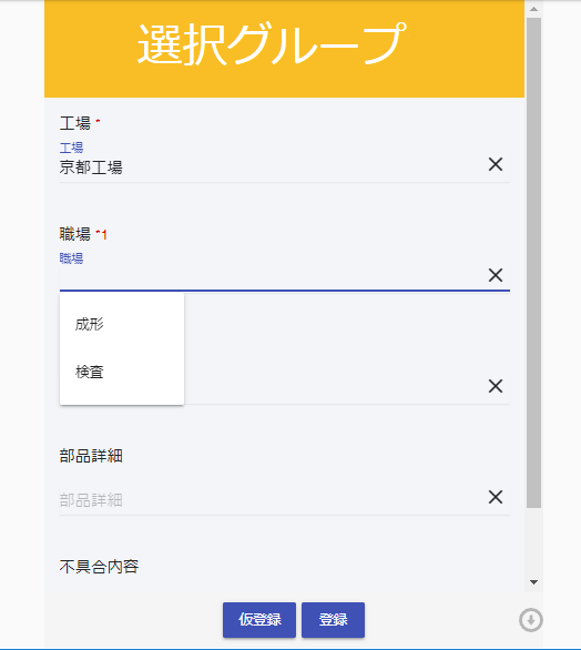 7.18 選択グループ機能 この機能を使用すると、上位のフィールドで選択した内容をフィルターとして使用して、次のフィールドに表示する選択肢をANDの条件で絞り込むことができます。最大5つのフィールドの選択肢を設定できます。