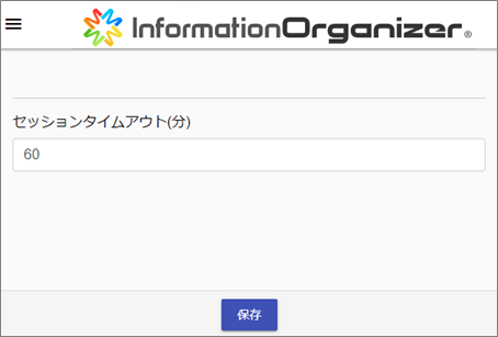 セッションタイムアウトが設定できます。セッションタイムアウトとは、⼀定時間 InformationOrganizerを操作していない場合に⾃動的にログアウトするまでの時間です。10〜1440分 の間で設定できます。初期値は、60分です。